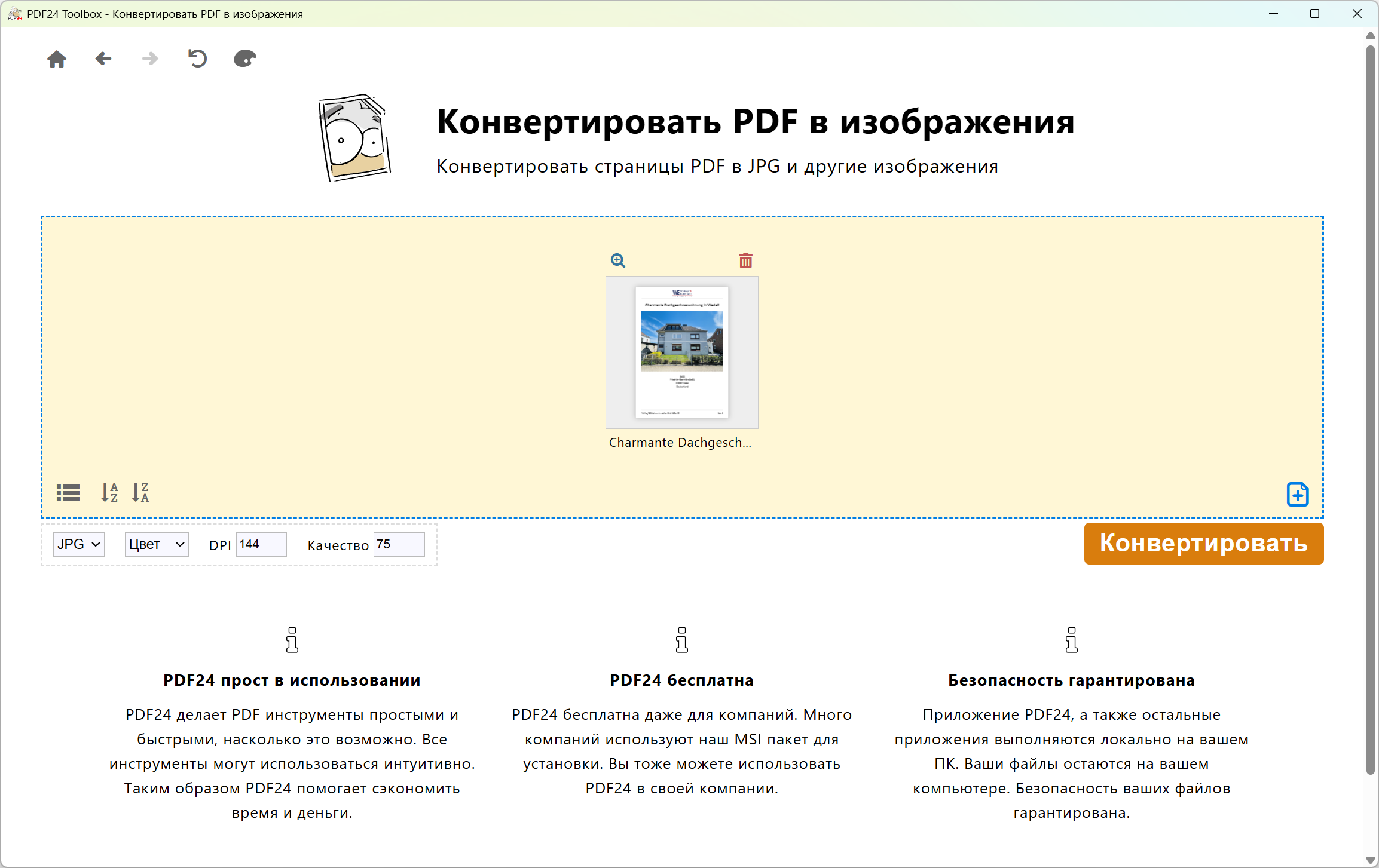 • PDF24 PDF Creator имеет возможность конвертировать различные документы или изображения в формат PDF. Программа выполнит все преобразования автоматически, вам нужно будет только перетащить документ в окно программы, например документ Word.